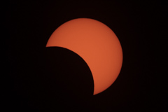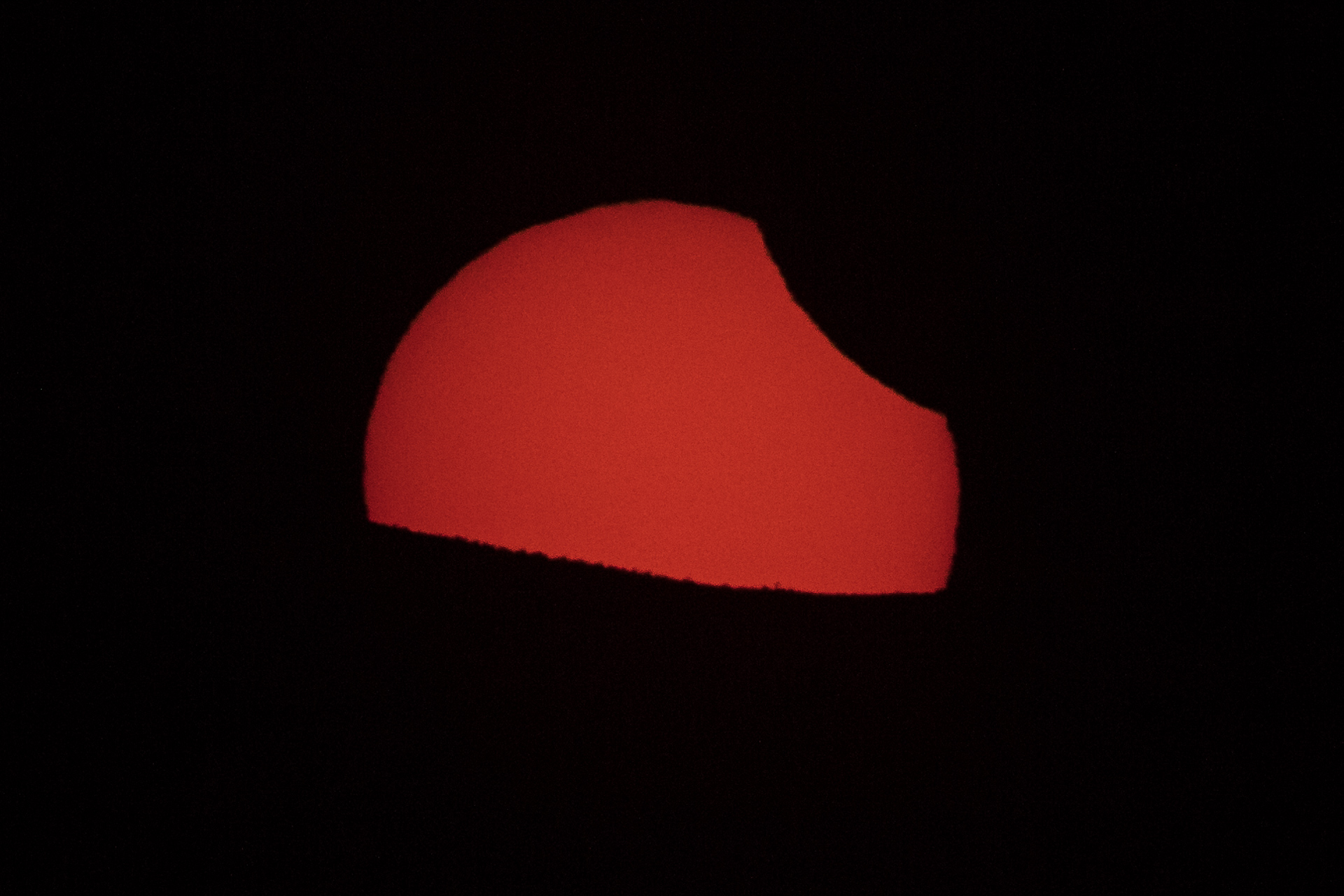 Sun about to pass below the western horizon with the moon still passing in front
